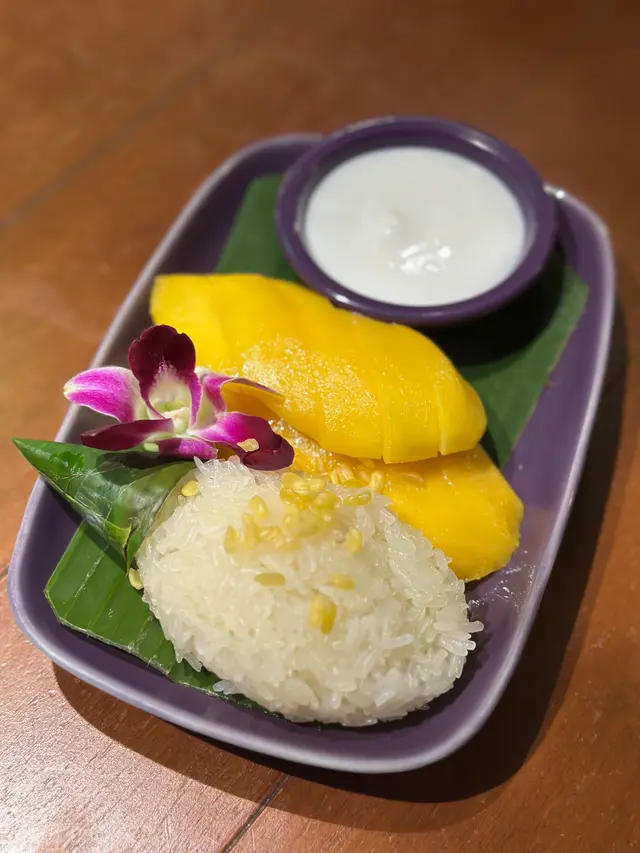 芒果糯米飯伴椰奶 : 糯米飯熱辣辣,口感煙韌,配埋香甜芒果,再淋上濃稠嘅椰漿,食泰國菜必叫甜品
