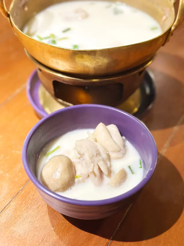 泰式椰子雞湯:雞湯味濃郁,有啖啖清香椰香味,雞胸肉嫩滑,再加埋草菇、香茅及其他泰式香料,非常開胃