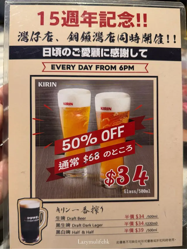 放工老友call我出嚟吹水💨佢話要帶我去佢公司附近食間正嘢🤫呢間我係銅鑼灣都成日食😏宜家原來在生啤全日半價嘅優惠!真係勁抵🍻啱哂我同一大班朋友一齊邊飲啤酒邊嘆日本野😝