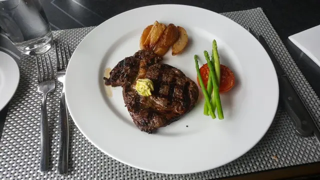 牛扒有好強烈的炭燒味,但係肉質唔夠嫩,輕微過火。