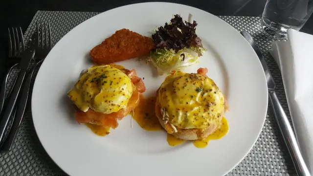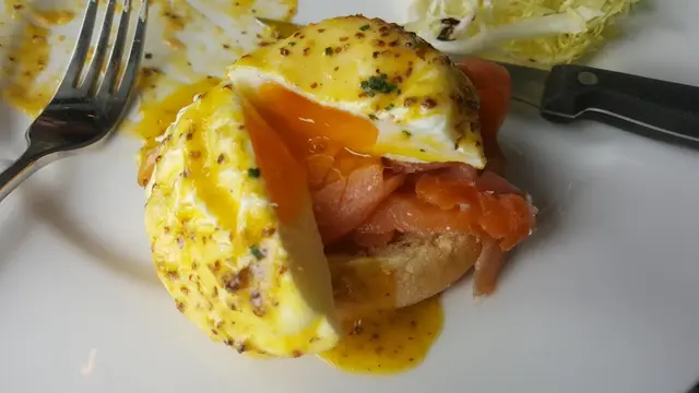 流心蛋好滑,三文魚唔會鹹,麪包軟滑。