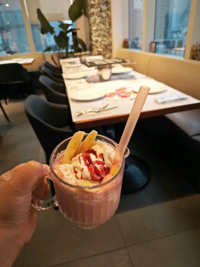 材料有香蕉、乳酪、牛奶、士多啤梨和士多啤梨醬。兩款飲品都非常之好味,飲到透心涼。😃😃😃