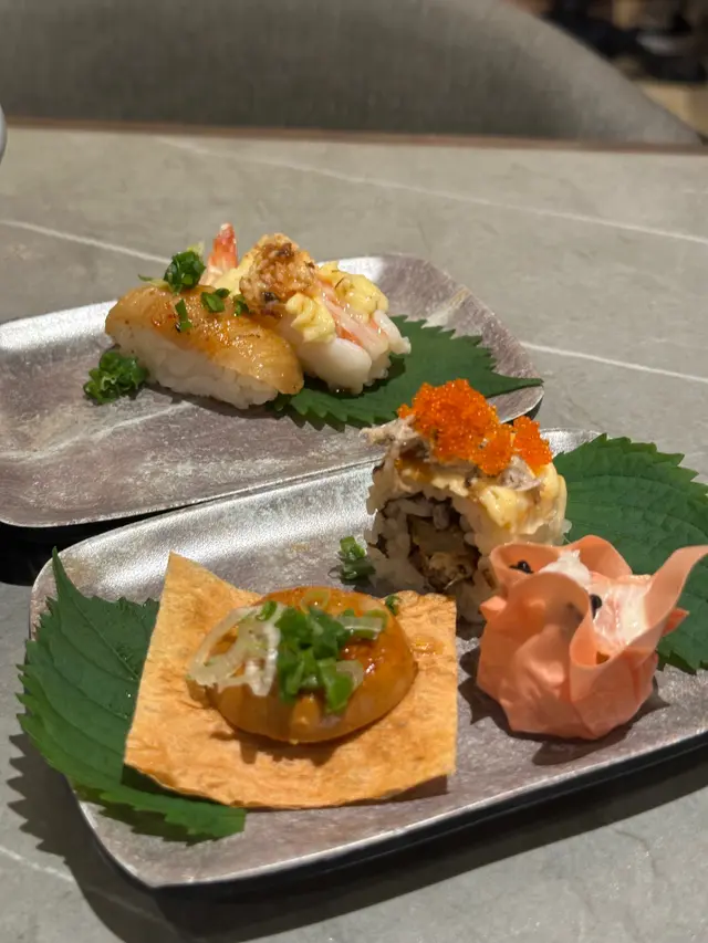 其他刺身亦見誠意,三文魚厚切油潤、松葉蟹腳鮮甜爽口、油甘魚油花分布平均、帶子軟滑香甜。壽司方面焦糖鮟鱇脆餅香氣濃郁,海膽軍艦味道濃厚,水準之上。