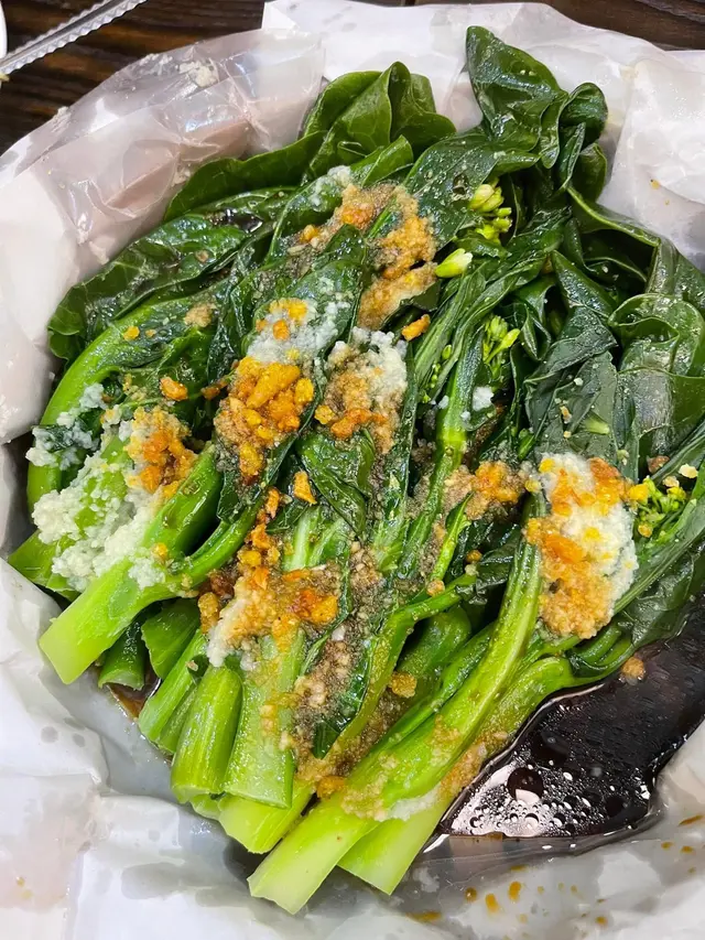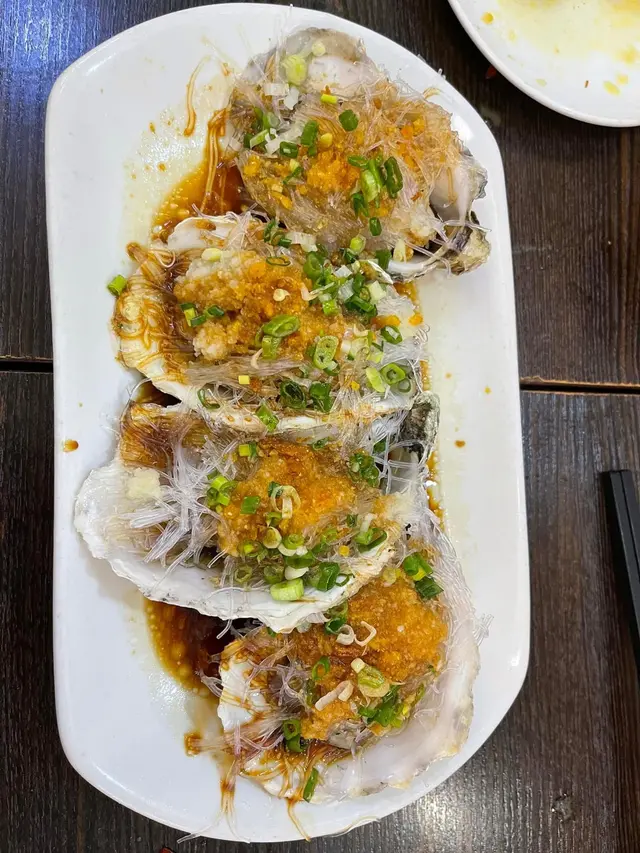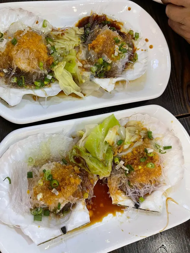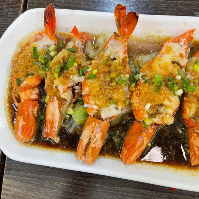 首先上桌的是蒜蓉粉絲大蝦。這道菜的呈現非常誘人,大蝦鮮紅的外殼在蒜蓉的襯托下顯得格外亮眼。當我用筷子輕輕夾起一隻大蝦,剛好可以感受到它的彈性和鮮嫩。蝦肉經過精心烹調,保留了海鮮特有的鮮甜,而蒜蓉則為整道菜增添了濃郁的香氣。粉絲吸收了蝦汁和蒜蓉的精華,每一口都充滿了滋味,讓人忍不住想要再來一口。