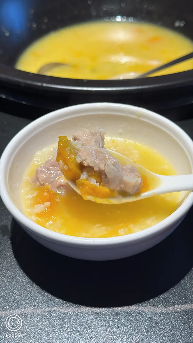 粥底本身有排骨和南瓜,吸取埋龍蝦、蟹、帶子等海鮮的湯汁後,味道變得濃郁鮮甜,超入味!