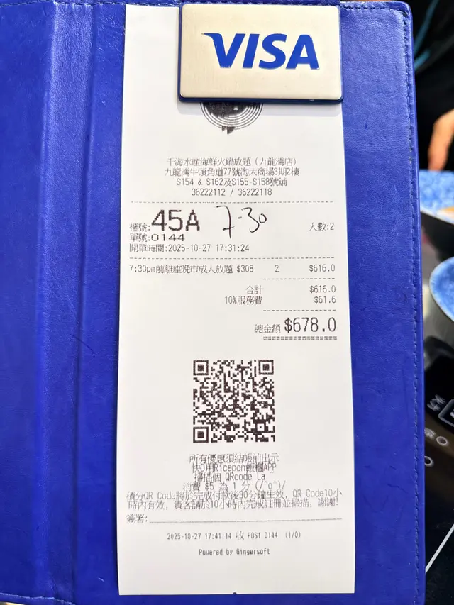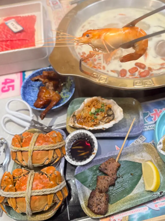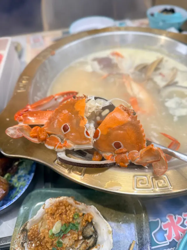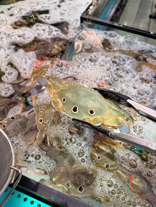 海鮮生猛.無限量供應.超鮮甜 Clareylee等級42025-10-28 關注 一收工就同朋友嚟九龍灣食海鮮放題踏入門口就見到即撈海鮮區1三點蟹、大頭蝦、瀨尿蝦、鮑魚、白蜆、花甲等...隻隻生猛最近係食大閘蟹季節.竟然每人附送一隻大閘蟹.又甜又多蟹膏1🦞必食大頭蝦,每隻都手掌咁大,撈起嘅時候仲扎扎跳,好新鮮拆開蝦頭爆蝦膏.蝦肉爽彈.鮮味十足🍨自助區種類豐富,涵蓋冷盤、熱葷、火鍋配料、自家製甜品 同 Häagen-Dazs雪糕仲有我至愛嘅榴槤呀🍲湯底多款口味選擇,除咗坊間常見嘅蕃茄豬骨、秘製麻辣、椰子雞外,亦有喇沙海鮮、海膽濃湯、冬蔭功等...總有一款啱口味1以上食評乃用戶個人意見 , 並不代表OpenRice之觀點。讚好分享海鮮生猛.無限量供應.超鮮甜 千海水產海鮮火鍋放題 https://s.openrice.com/QrbT0Tzol00檢舉 張貼 評分5味道5環境5服務5衛生5抵食用餐日期2025-10-27用餐途徑堂食用餐時段晚餐