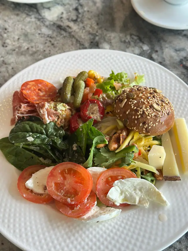 水牛芝士配番茄、煙三文魚、青木瓜沙律、沙律菜….