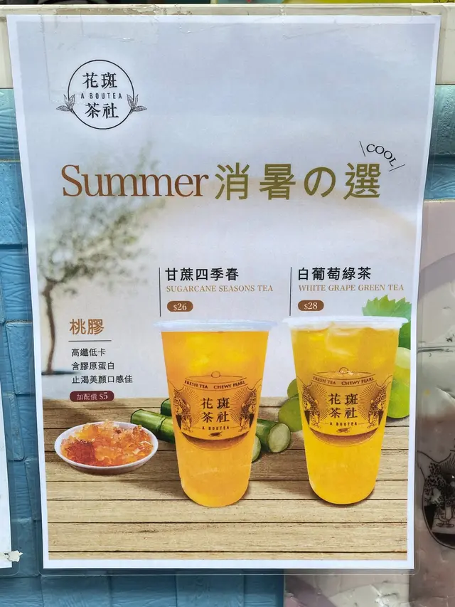 消暑養顏茶飲 ♥ 甘蔗四季春 + 桃膠。白葡萄綠茶 ♥ 花斑茶社 estertingho等級42022-06-26216 瀏覽 關注 天時暑熱特別缺水,飲番杯野解渴先 ~~ 路過『花斑茶社』見到新推出嘅消暑之選 就點哂兩款 ~~ 儍媽的 ... 甘蔗四季春〈HK$26〉 +HK$5 配埋含膠原膠白、高纖低卡嘅桃膠 香甜甘蔗味配搭回甘嘅四季春 清甜滋潤、消暑又養顏 ~~ 儍爸的 ... 白葡萄綠茶〈HK$28〉 白葡萄果香嘅綠茶,酸酸甜甜,味道清爽又止渴 ** 以上分享是以我的口味、體質和情況作出分享及感受,一試 / 合用與否請自行決定以上食評乃用戶個人意見 , 並不代表OpenRice之觀點。讚好分享消暑養顏茶飲 ♥ 甘蔗四季春 + 桃膠。白葡萄綠茶 ♥ 花斑茶社 花斑茶社 (崇齡街) https://s.openrice.com/QrbT07wn300檢舉 張貼 評分4味道4環境4服務4衛生4抵食用餐日期2022-06-26等候時間5 分鐘 (堂食)用餐時段下午茶