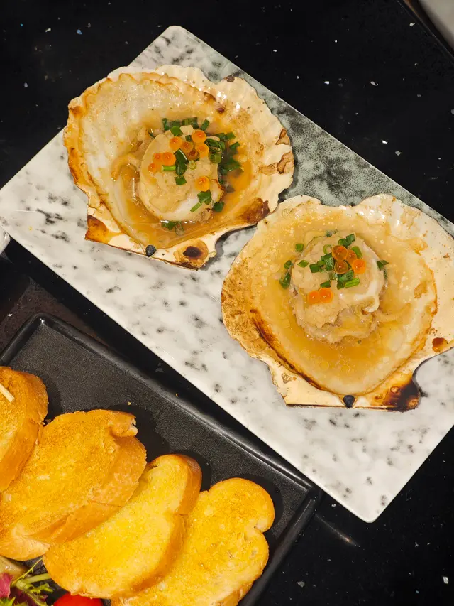 今期做緊優惠仲有平左,原隻北海道扇貝即使燒完出黎都好大隻。加左魚籽係上面幾靚,蒜味夠多夠香,扇貝口感好好