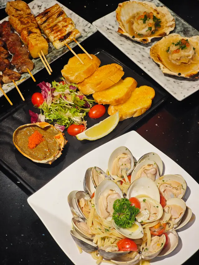 估唔到串燒店食到好食嘅意粉,首先擺碟已經非常有心思,而且蜆大大隻都唔少。意粉用左扁意粉,蒜味同白酒香幾好食,蜆肉厚肉夠鮮甜好好食