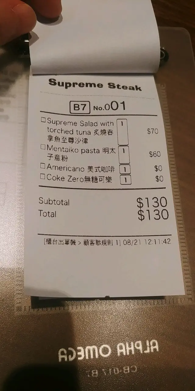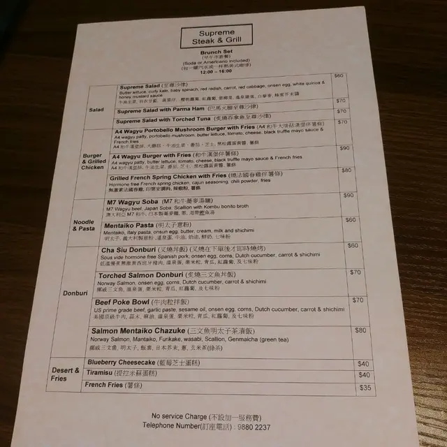 深水埗新餐廳 悠閒的午餐 hellowincy852等級22020-08-21236 瀏覽 關注 今日同朋友嚟咗深水埗食午餐, 我哋嗌咗一個炙燒吞拿魚至尊沙律, 另外加一個明太子意粉, 同埋加多30蚊要個藍莓芝士蛋糕。呢度嘅環境都幾新淨, 闊落, 光猛, 同埋有啲工業風。 地點都近深水埗地鐵站, 行五分鐘就到。 價錢方面一啲都唔貴, 又唔使加一。 食埋個甜品, 兩個人都唔使二百蚊。 如果要牛扒套餐嘅話, 仲可以90分鐘無限添薯條同汽水。味道方面, 我覺得炙燒吞拿魚好好味, 好香, 喺第二度比較少有燒吞拿魚食。 另外個明太子意粉都好多汁, 芝士蛋糕都好食又未算好驚喜。服務都好殷勤, 職員成日裝水, 又唔會催我哋走, 好輕鬆就坐咗兩個鐘喇。 如果傍晚嚟嘅話, 仲可以喺附近嘉頓山行下影相打卡。炙燒吞拿魚至尊沙律$70炙燒吞拿魚至尊沙律$70明太子意粉$60以上食評乃用戶個人意見 , 並不代表OpenRice之觀點。1分享深水埗新餐廳 悠閒的午餐 Supreme Steak & Grill https://s.openrice.com/QrbT0ikav00檢舉 張貼 評分5味道5環境5服務5衛生4抵食推介美食炙燒吞拿魚至尊沙律$70炙燒吞拿魚至尊沙律$70明太子意粉$60用餐途徑堂食