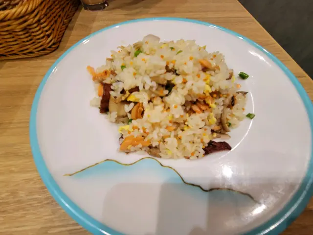 蟹籽三文魚蛋白炒飯,份量適中,味道不錯,材料豐富,尤其煙肉香口,簡單美味