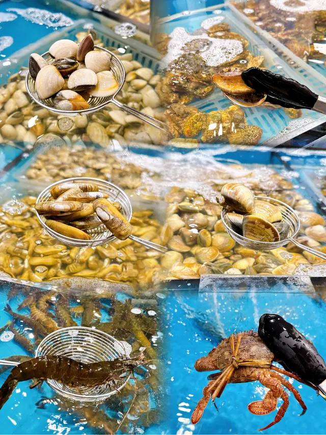 自撈海鮮款式都唔少,有鮑魚、大蜆、沙白、藍點蟹、鑽石蜆、基圍蝦、海蝦,全部都新鮮生猛,撈起之後店員會幫你清洗及處理!
