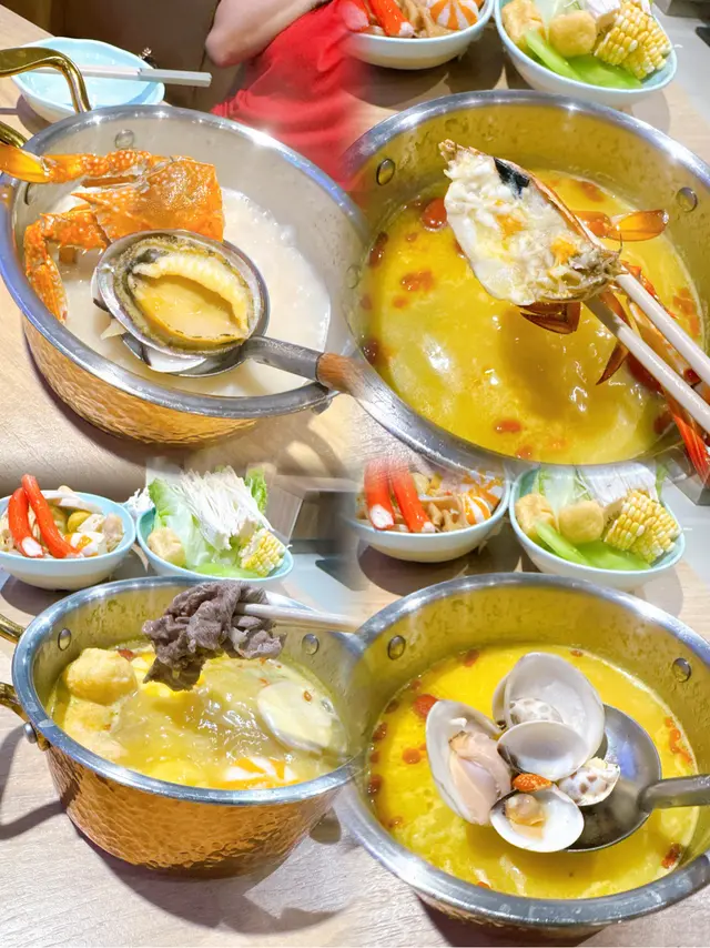 湯底有8款選擇,我哋就揀左金湯花膠雞鍋及鮮魚海鮮鍋,配海鮮真係唔錯,除咗海鮮之外,肉類質素都唔錯,就連雪糕、雪條、甜品都係任飲任食!