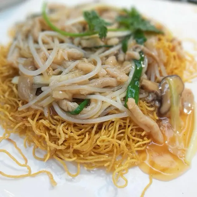 鑊氣十足!麵底煎到金黃脆口,淋上薄芡汁都保持酥脆。銀芽爽脆,肉絲嫩滑,簡單但好好味。