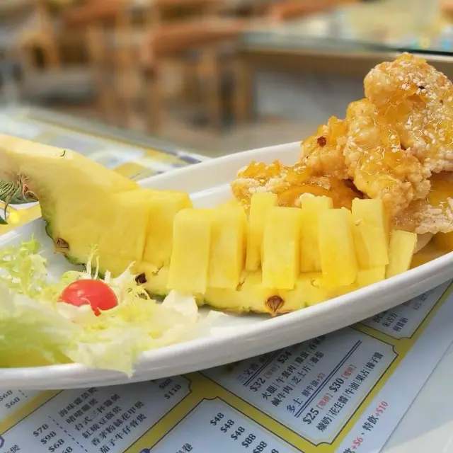 一上枱就聞到清新果香!班球炸到金黃酥脆,代替傳統咕嚕肉,口感更加細膩。秘製柚子醬酸甜適中,配搭新鮮菠蘿粒,開胃得嚟又唔會膩。最驚喜係面頭灑咗少少柚子皮碎,增添香氣層次,視覺同味覺都滿分!