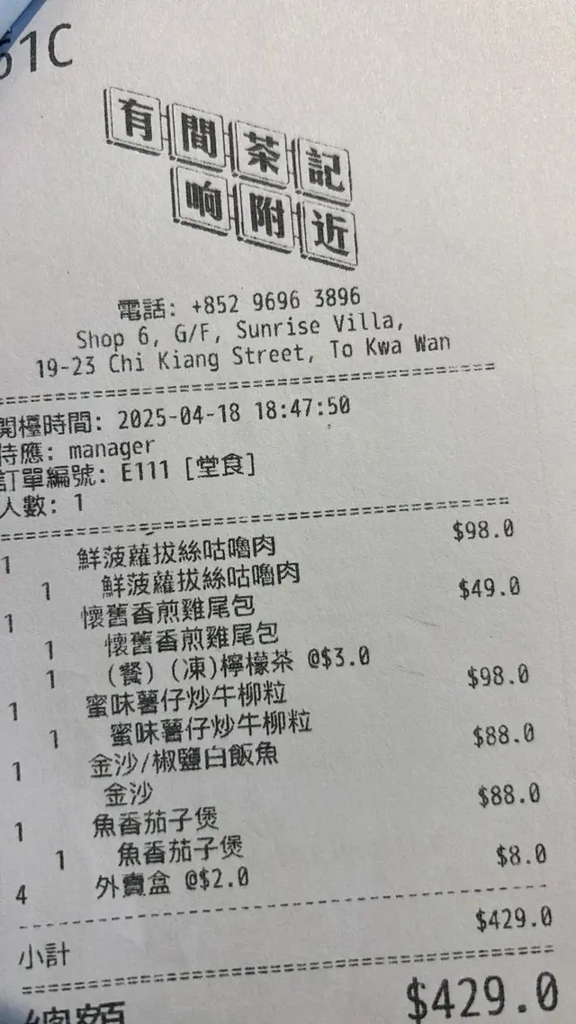 今晚同朋友嚟「有間茶記響附近」試新菜,一入門口就被佢哋明亮整潔嘅環境吸引,卡位闊落,冷氣夠涼,仲有陣陣清新檸檬香,令人食得特別放心!