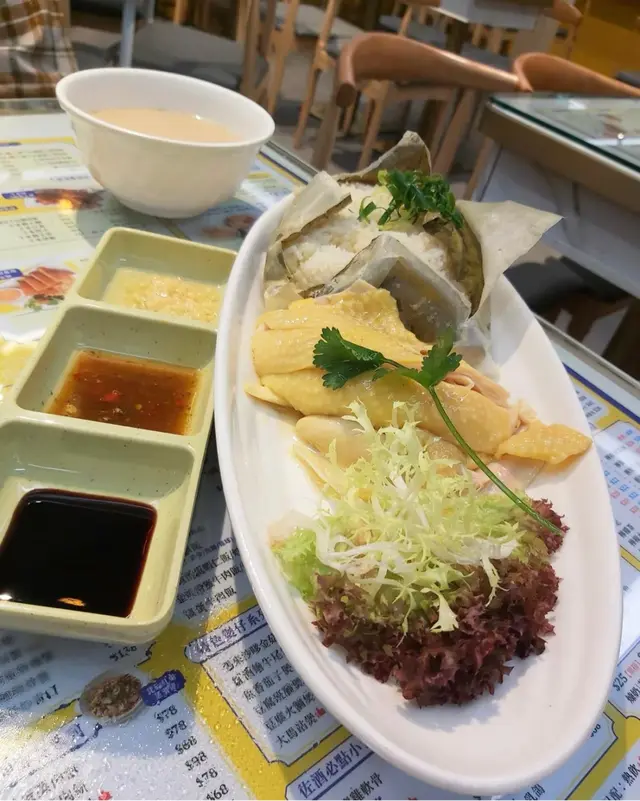 海南雞去骨處理得乾淨,雞皮爽滑,肉質嫩到似食緊豆腐!荷葉油飯真係大加分,幽幽荷葉清香中和咗油膩感,飯粒分明又夠味。跟餐仲有碗老火湯,今日係冬瓜薏米湯,清甜去濕,好啱夏天飲。