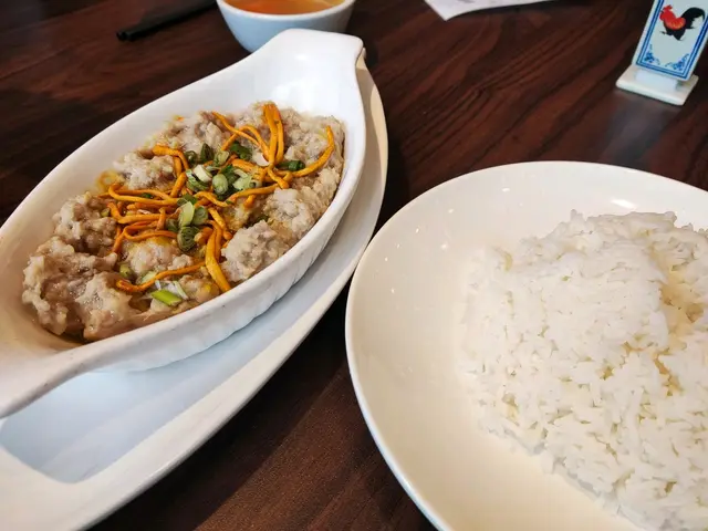 朋友就叫左果肉餅飯,$60。偷吃左一啖,啲肉餅係紮實有汁,不錯不錯。