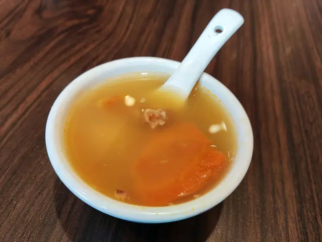 一坐底未落單,佢就上左湯。應該係午餐送/跟嘅,係蕃茄薯仔湯,係唔錯的!無味精感!