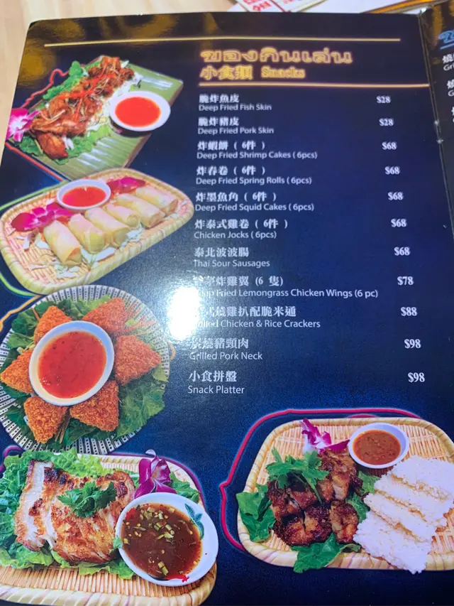 燒烤串燒每樣兩串,有雞肉,牛肉,肉質幾嫩,蘸沙爹醬唔錯。炸魚皮好大舊,幾脆卜卜。