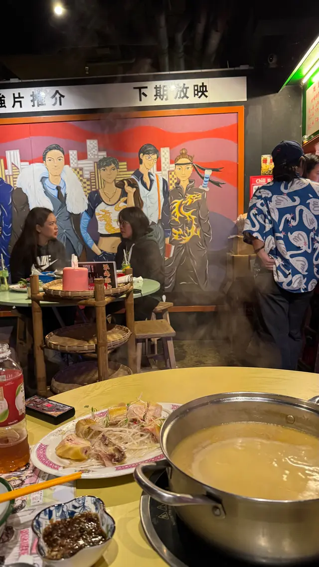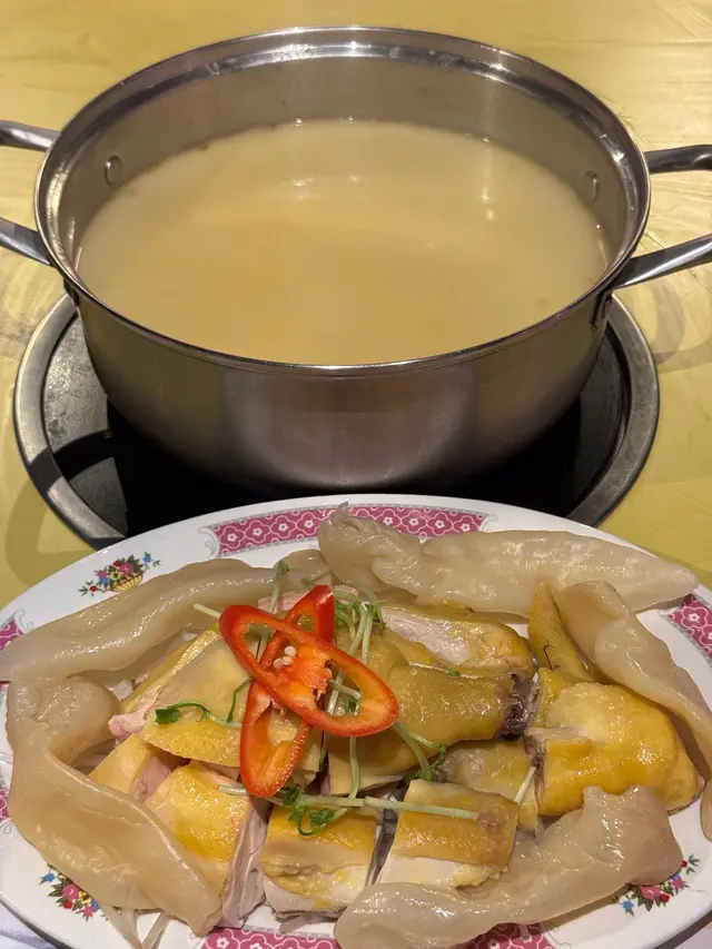 $298「咯咯雞花膠湯」:店長姐姐叫我哋等湯底煲滾就飲番碗湯然後先開始打邊爐,湯底真係味道濃郁好鮮味😋;花膠同雞另外一個碟分開上,花膠大大件有6件,廚房已經將雞件煮到7成熟所以再淥一下就食得,花膠同雞都幾滑幾好味🤣