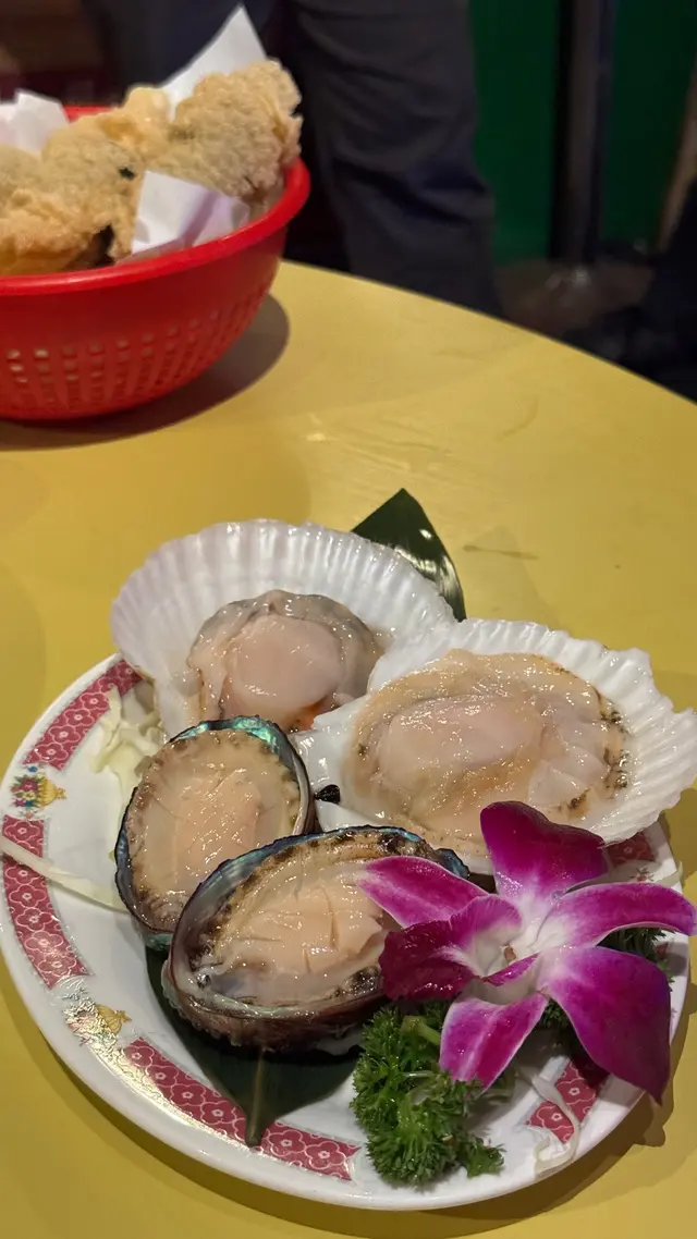 $69「日本扇貝2隻」+ $69「大連鮑魚2隻」:扇貝同鮑魚已經起咗肉離殼,淨係將鮑魚肉同埋扇貝肉放入火鍋裏邊灼2-3分鐘就食得😋;我哋將兩樣都灼到啱啱熟,鮑魚肉質爽滑,扇貝就軟熟,兩樣都味道鮮甜🤩