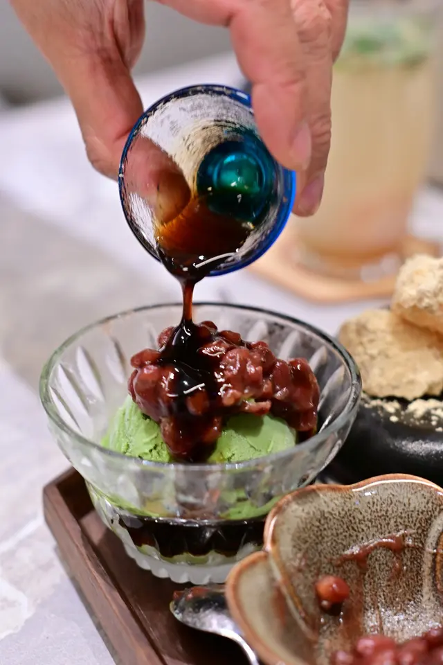 甜品擺盤都好靚!!!!!!!紅豆綠茶雪糕都好正!!