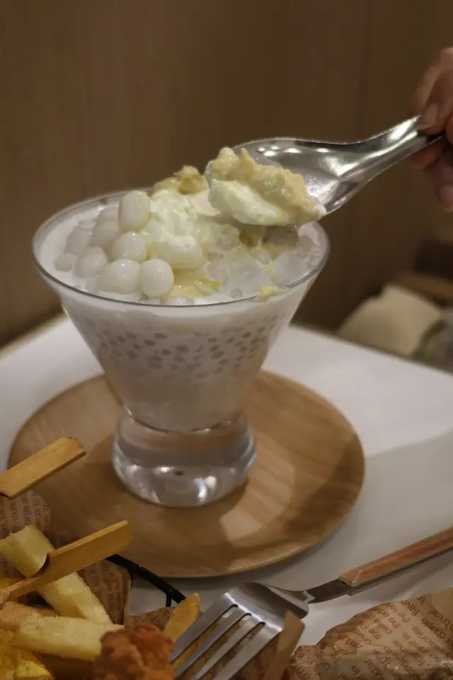 「榴槤控」實鐘意:選用D24榴槤肉,搭配海藻珠、西米、椰果,再配上濃郁榴槤雪糕,口感豐富多層次,榴槤香氣濃郁,每一口都是極致享受!