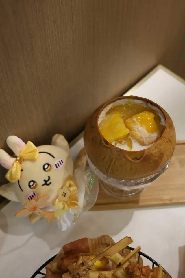 原個椰皇上,椰皇鮮奶蛋白打底,配上鮮芒果楊枝甘露,再加入椰汁及花奶,層次豐富,椰香與芒果香完美融合,清涼解暑!