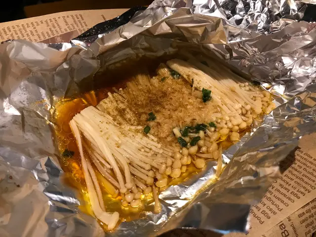 金菇喺錫紙包裹下燒烤,一向都係BBQ嗰時受歡迎嘅菜式,金菇上面一層蒜茸令本身平凡嘅金菇更突出其鮮美嘅風味。