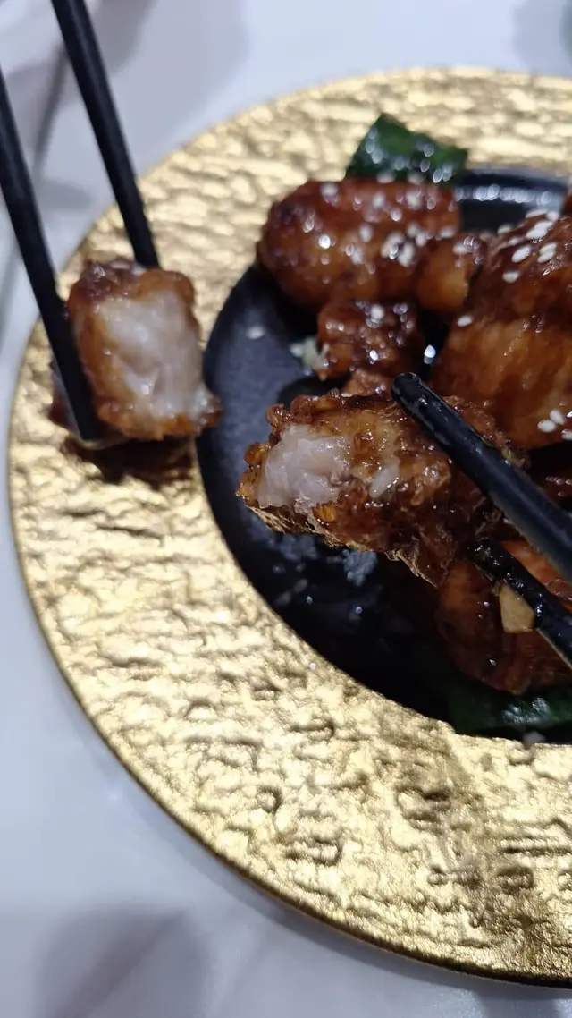 首先講主角 「黑醋骨」。呢度嘅黑醋骨,絕對係誠意之作!一上枱,那股濃郁醇厚、帶點甜香嘅鎮江黑醋香氣已經撲鼻而來,未食先開胃。最令人驚喜嘅係,一咬落去,你即刻 「feel到即整」 嘅熱辣辣同鑊氣!排骨外層炸得微微酥脆,裹住薄薄一層晶瑩剔透、濃稠得宜嘅黑醋醬汁,酸甜比例調校得恰到好處,唔會死酸亦唔會過甜,非常平衡。排骨肉質鬆化軟腍,完全吸收咗醋香精華,啖啖肉得嚟又唔會乾柴。個醬汁真係精髓所在,濃郁得嚟唔膩,令人忍唔住想啜骨同用嚟撈飯!呢份即叫即炒、熱辣香脆嘅新鮮感,正正係佢「真心好食」嘅關鍵,絕對係必試之選!