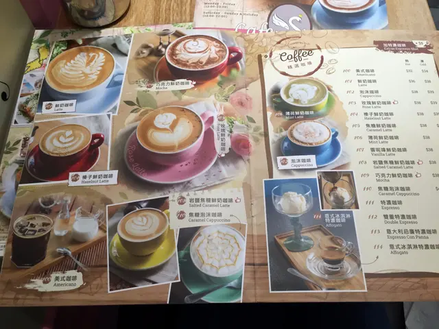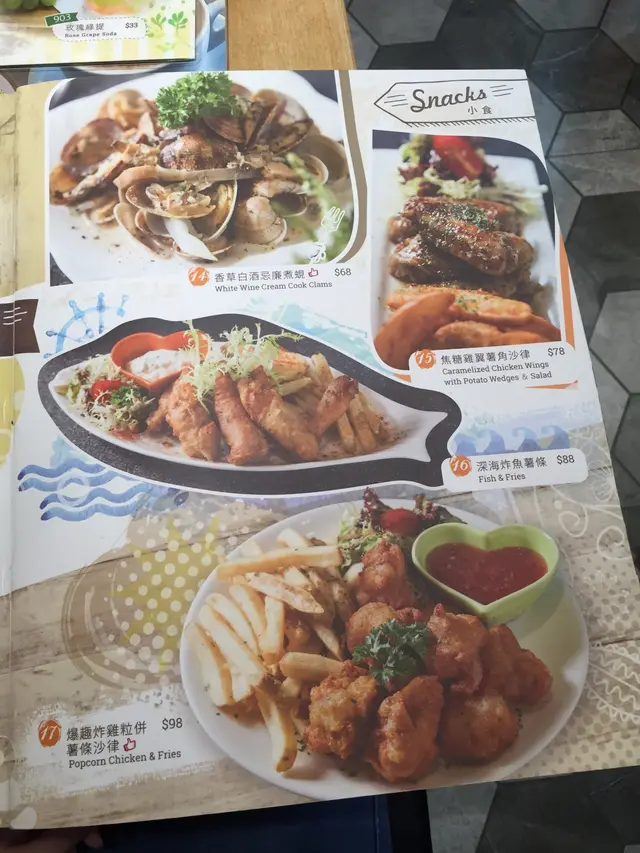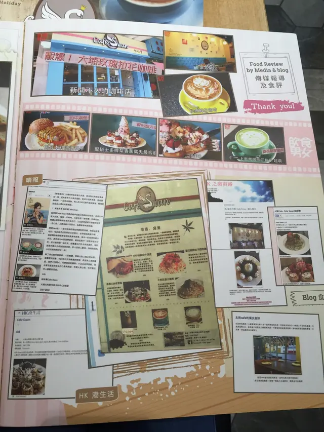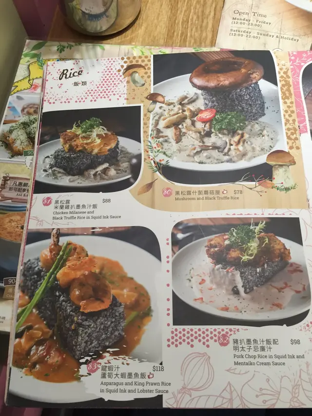 打開餐牌,發現食物的選擇蠻多,沙律、小食、湯類、主食(漢堡、麵類、飯類)、咖啡、甜品… 實在目不暇給!友人說我一定要點綠茶鮮奶,因為會有我最愛的三眼仔拉花!另外,我們還選了新推出的玫瑰青提飲品、軟殼蟹黑松露忌廉義大利麵、秘製醬汁鵝肝和牛巨人堡、玫瑰窩夫,這頓晚餐十分豐富呢!