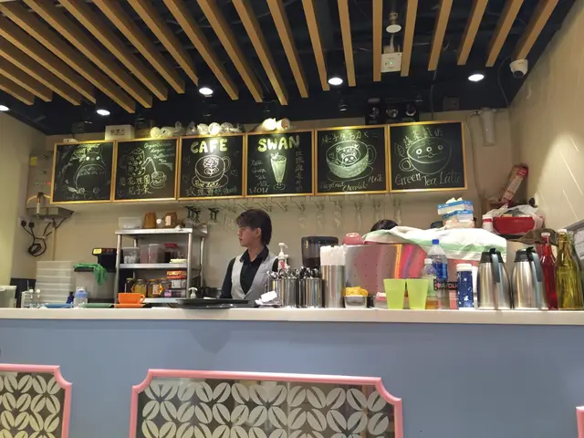 恰巧我們的位子就在開放式廚房面前,可以欣賞咖啡師製作飲品,令我們都非常期待!終於店員為我送上綠茶鮮奶,三眼仔拉花十分可愛!