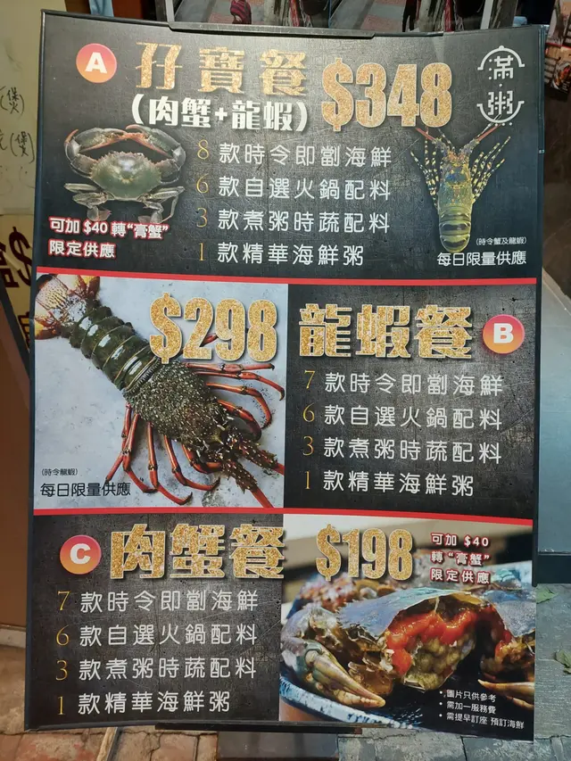 肉蟹套餐、孖寶套餐、龍蝦套餐,還包多款火鍋食材,也可單點及追加。