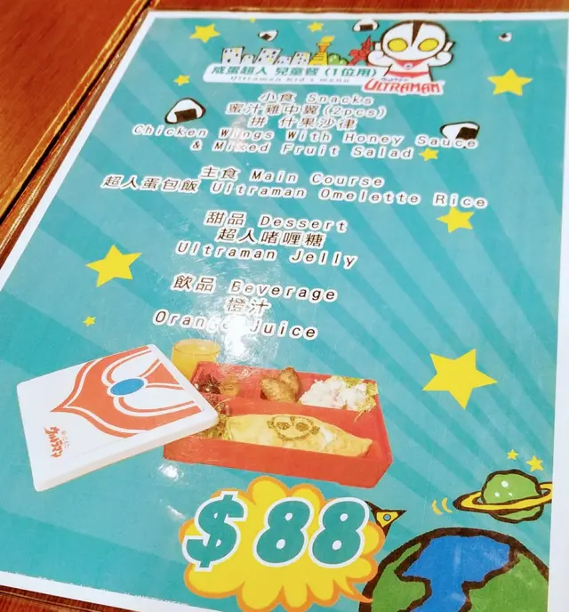 沙律、雞翼、超人蛋包飯、超人啫喱及橙汁1杯。