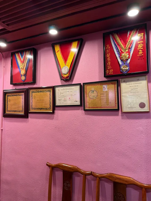 一上到去餐廳地方唔算大,但各人座位闊落舒適,餐廳內裝修故息故鄉,好有傳統中國feel,而牆上掛滿了證書