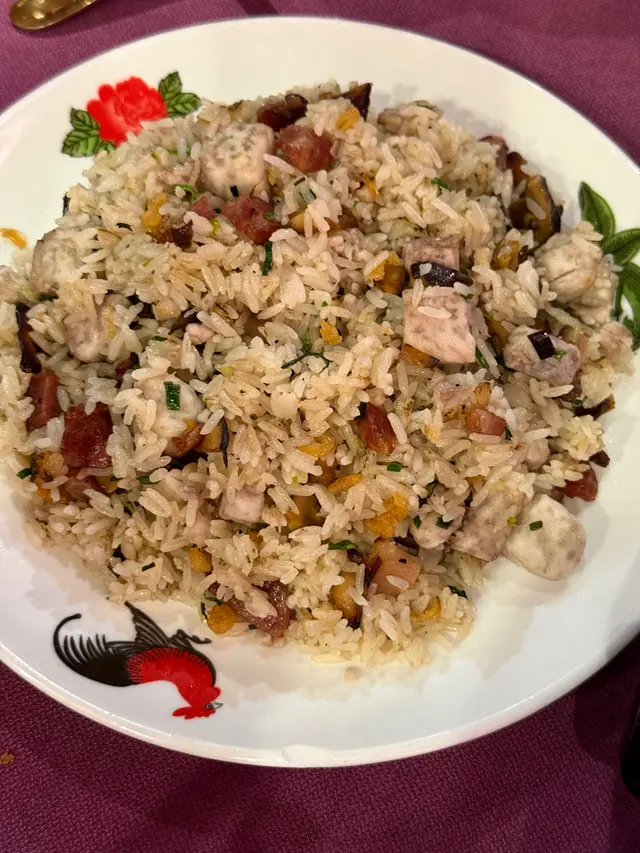 第八道臘味芋頭潮州焗飯,有爆香了嘅蝦米、冬菇粒、葱芹與臘味粒,同蒸熟嘅芋頭,口感較乾身,撈勻入口十分入味