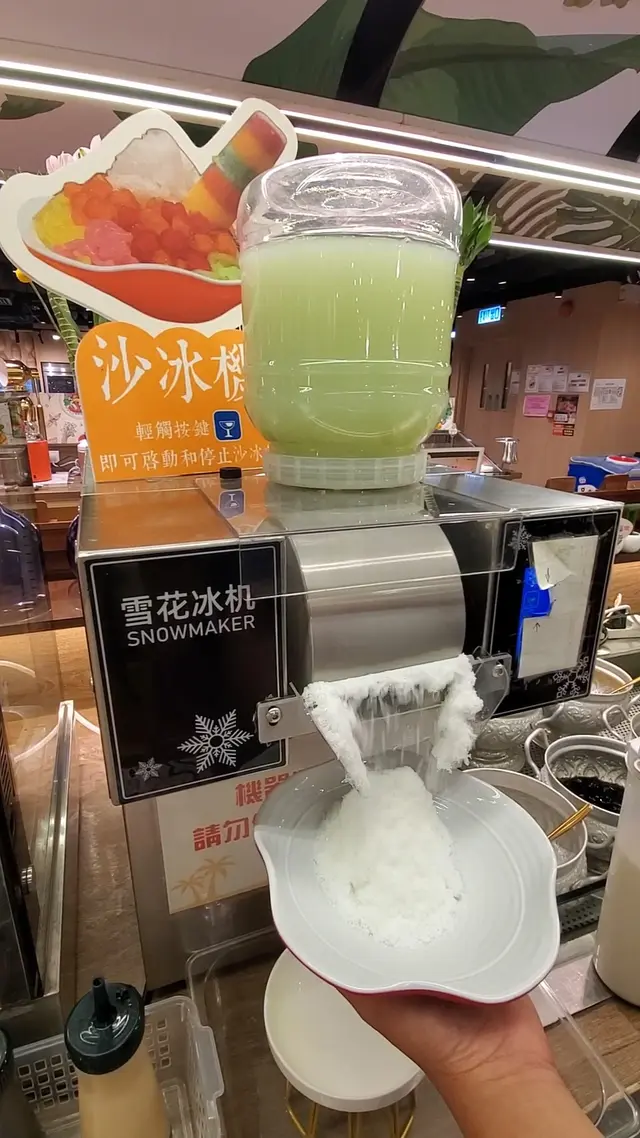 飲品區提供啤酒、汽水、果汁及泰式奶茶等。甜品除了一般雪糕外,特別推薦泰式千層糕和椰汁糕。最有趣的是自助綿綿冰機,可自行製作刨冰搭配椰果、紅豆等配料,冰品質地細緻,消暑效果一流。