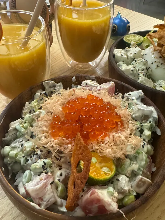 呢個poke 有好豐富嘅三文魚子、吞拿魚、雜菌香菇等 好吸引 底層可以揀壽司飯或者沙律
