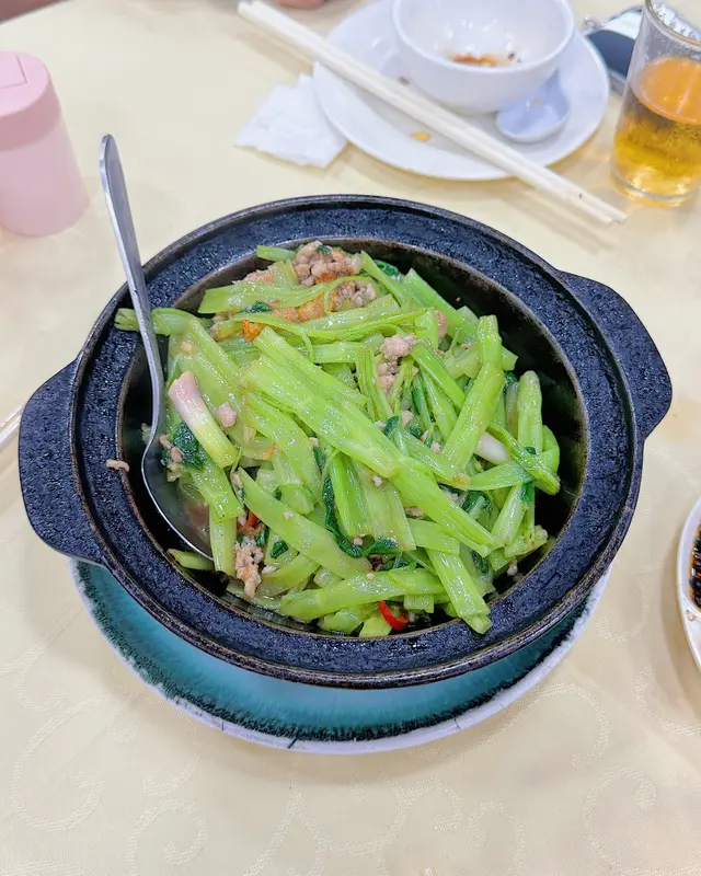 用肉碎炒過好香口,通菜爽口鹹香,撈飯一流!
