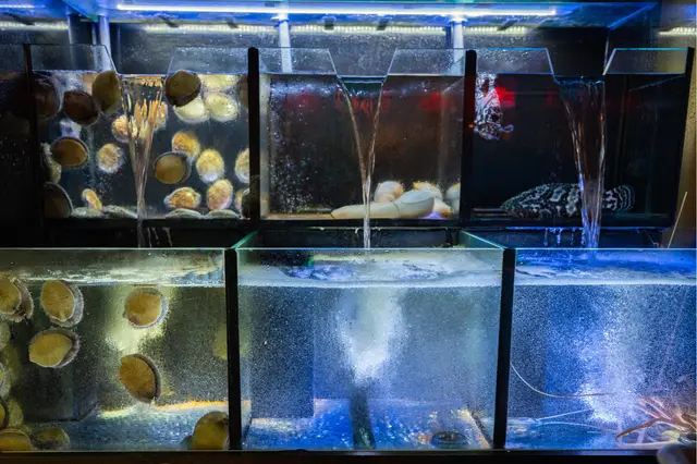餐廳設有特大魚缸飼養水產,套餐已包括新鮮海鮮拼盤,有大蟶子、蠔以及鮮蝦。性價比很高。