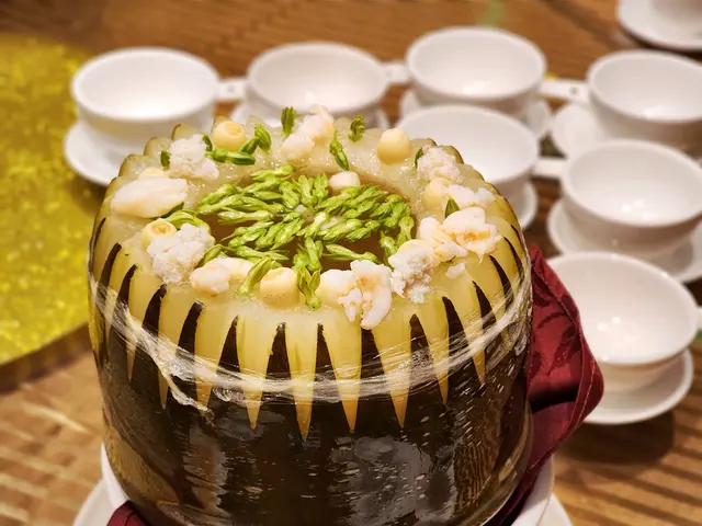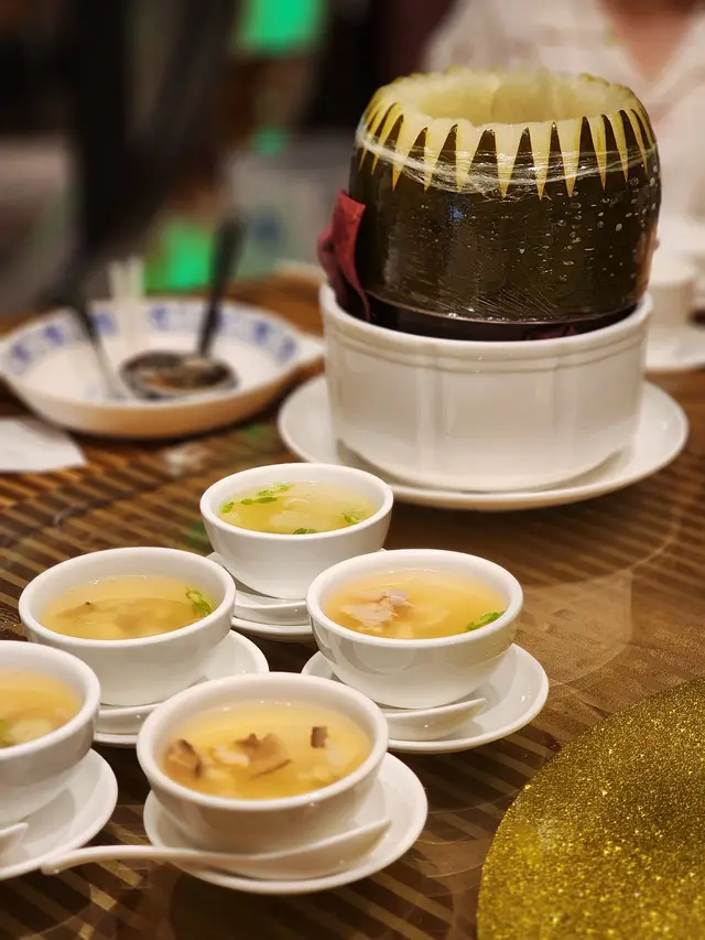 不只老媽喜歡,夏天飲用消暑的冬瓜盅,令人倍感舒暢!香氣、湯韻來得自然,材料有夜香花、蝦仁、蓮子、瘦肉、帶子和冬菇等,做到了標準!