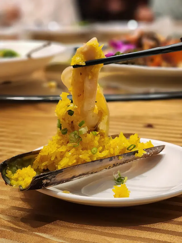 第一次嘗試用薑米代替蒜蓉的蟹粉薑米蟶子王。要讚的是當晚的蟶子頗大,面層用黃薑粉炒過的薑米飯、加上蔥花,帶出蟶子王的鮮甜美味,富創意及新鮮感。但美中不足是蟶子王有點蒸過頭了,以致蟶子肉略為過硬!