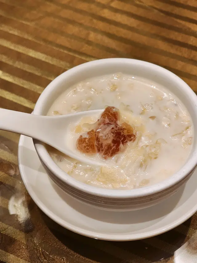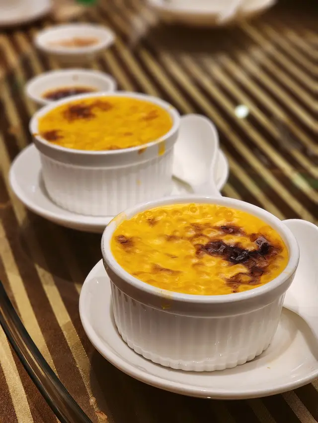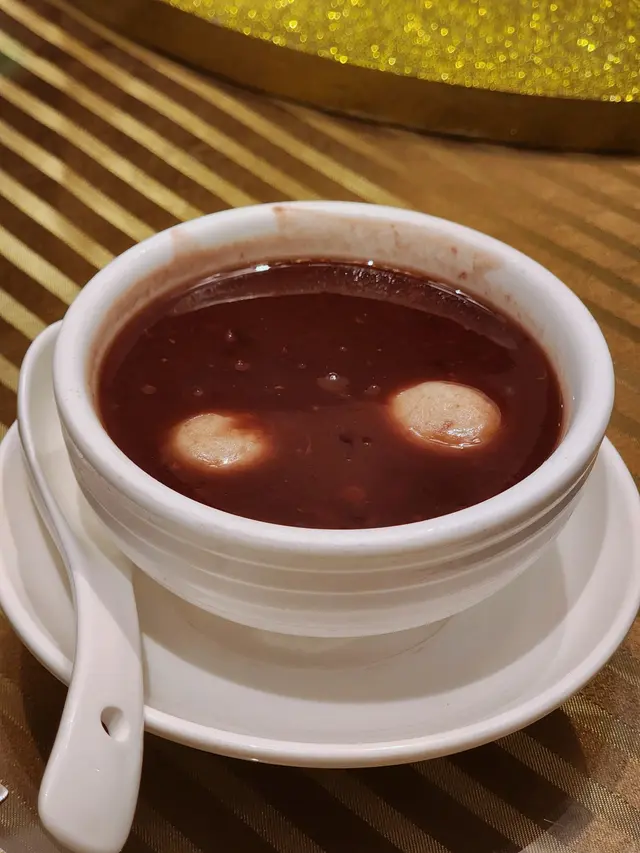 甜甜甜,生日當然不能缺甜!再來的西米焗布甸、陳皮紅豆沙湯丸、椰皇燉桃膠和烏卒卒黑芝麻奶凍,令老媽心甜口也甜!
