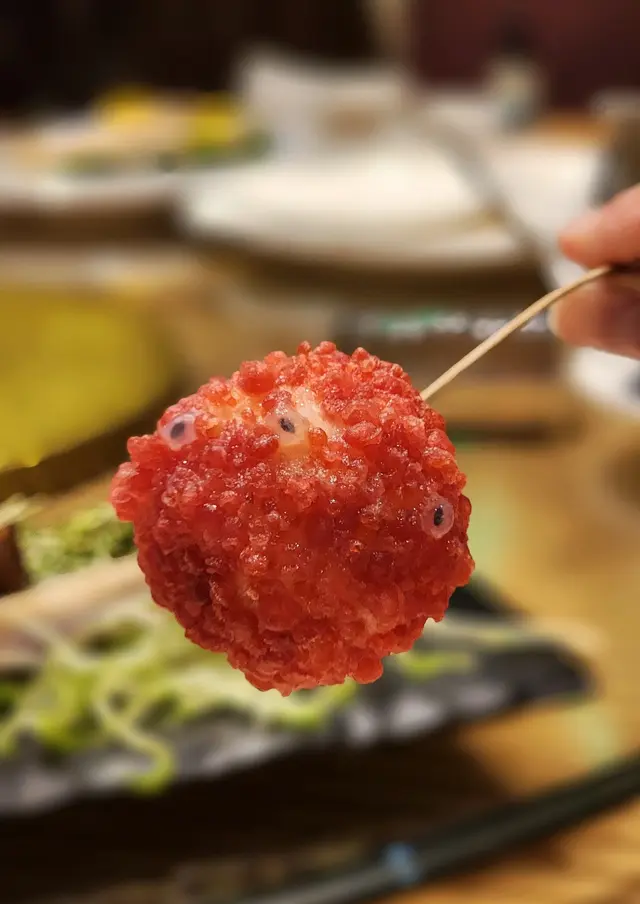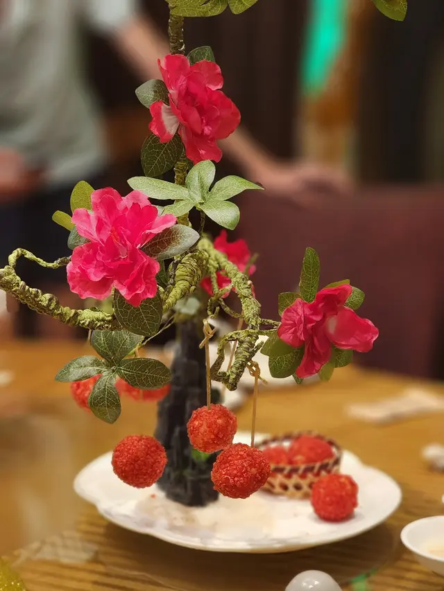 為肖為妙的荔枝樹,造型漂亮、像真度高, 這道別出心栽的菜式,起初為大家帶來了驚喜!可是,荔枝造型的墨魚丸,入口一點墨魚香也沒有,外內未能兼備,就是這一點點叫人大大的失望!