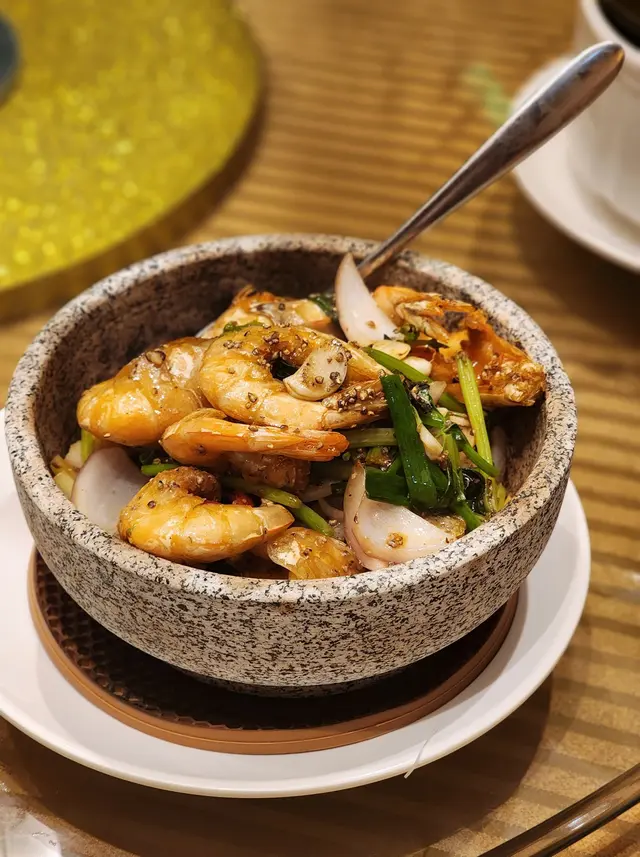 香氣四溢的石鍋九層塔胡椒蝦,同樣是老媽所挑選的菜式!蝦隻新鮮、爽彈,吸收了惹味度恰好的胡椒香,令老媽吃得開懷!