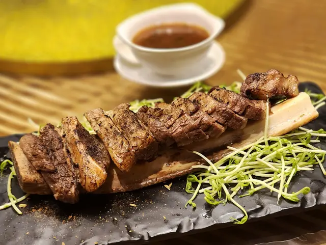 再來的火炙牛肋條,不溫不火、牛味淡然,完全失去焦點!