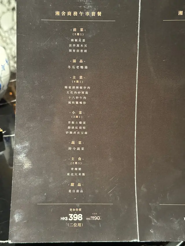 🍽️湘舍商務午餐套餐 ($398/2位)