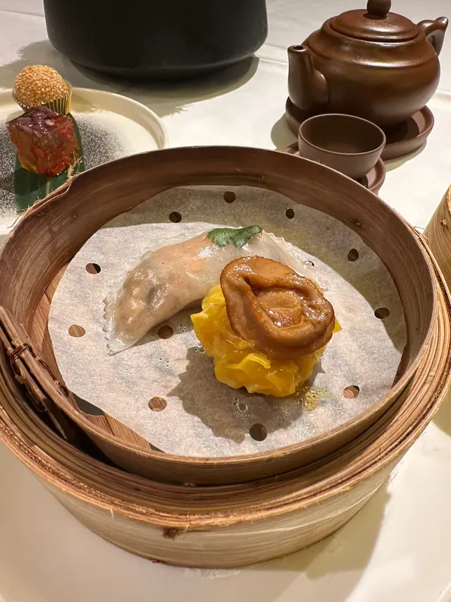 呢道菜係「六姐粉果」同「鮑魚燒賣」,「六姐粉果」據講係源自舊日家廚手藝,外皮爽滑有韌性,內餡飽滿,充滿懷舊風味。「鮑魚燒賣」用料實在,鮑魚有鮮味,燒賣帶有濃濃香菇味,兩款點心各有各精彩,食到停唔到口。